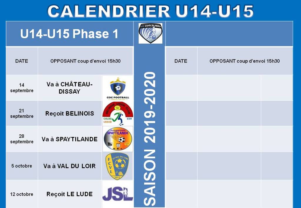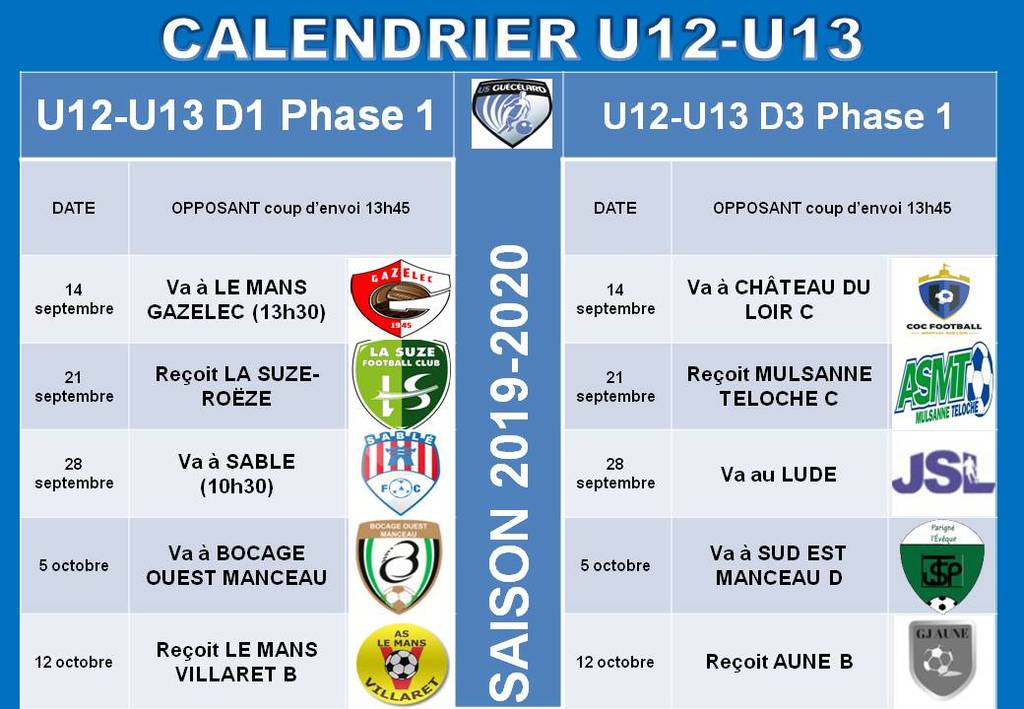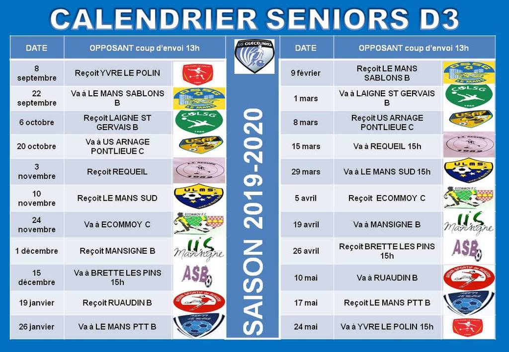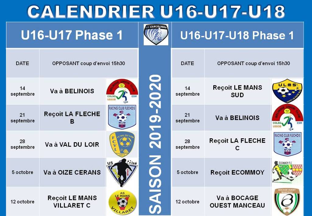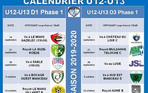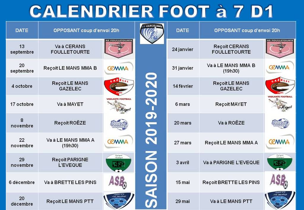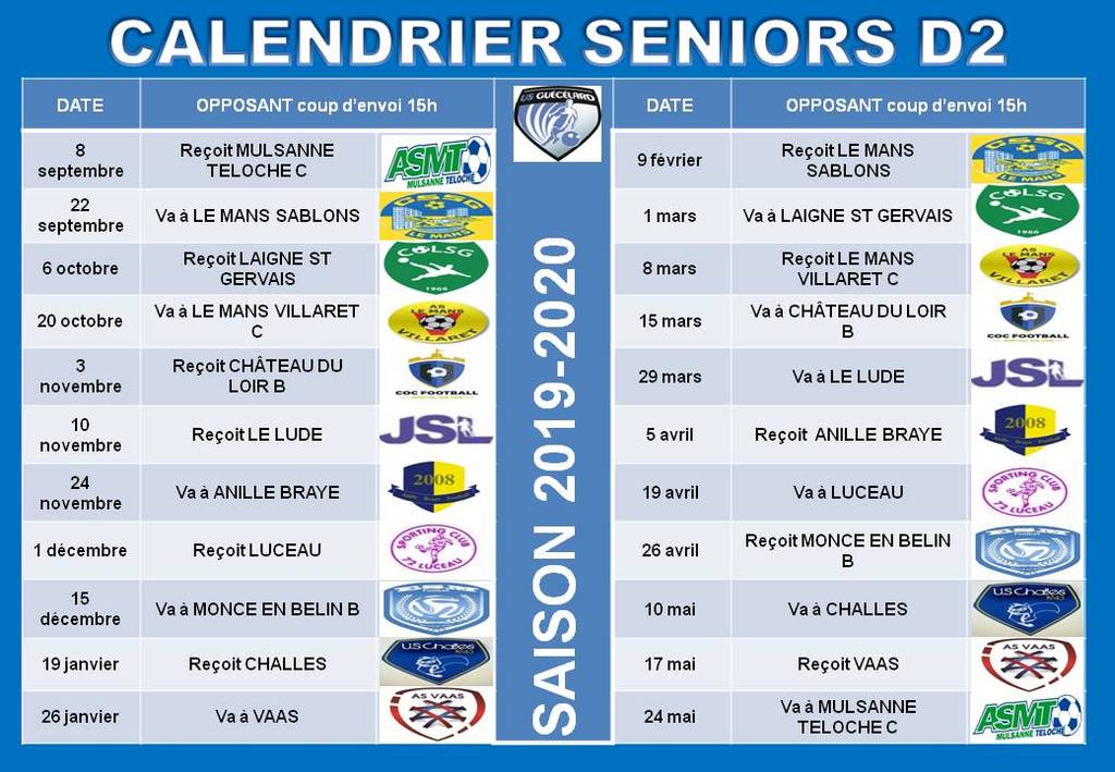 Calendriers Championnat 2019-2020