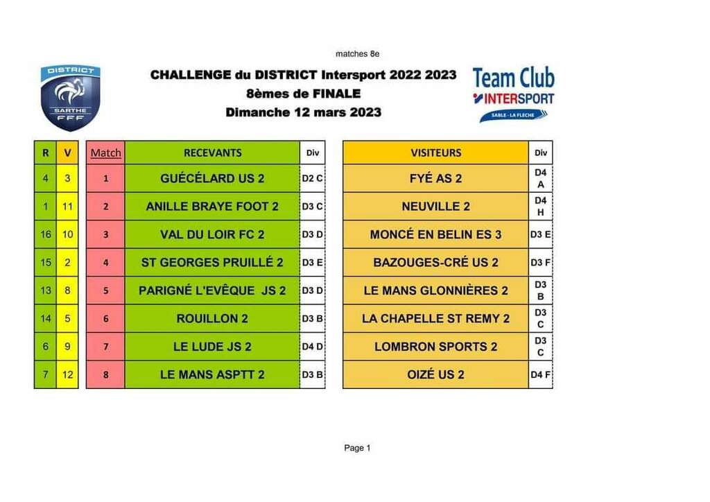 📅 Dimanche 12 mars 🏆 1/8ème de Finale 📌 Stade municipal de Guécélard 🕞 14h30 ➡️ Séniors D2 - A.S FYÉ B (D4)