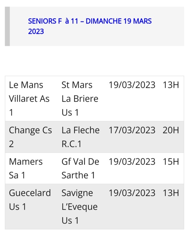 📅 Dimanche 19 mars 🏆 1/4ème de Finale 📌 Stade municipal de Guécélard 🕞 13h ➡️ Séniors F - Us Savigné L'Evêque