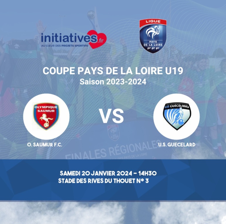 Pour le compte du 3ème tour de Coupe des Pays de la Loire U19, la #TeamUSG se déplacera à Olympique Saumur Football Club (Page Officielle) le samedi 20 janvier à 14h30