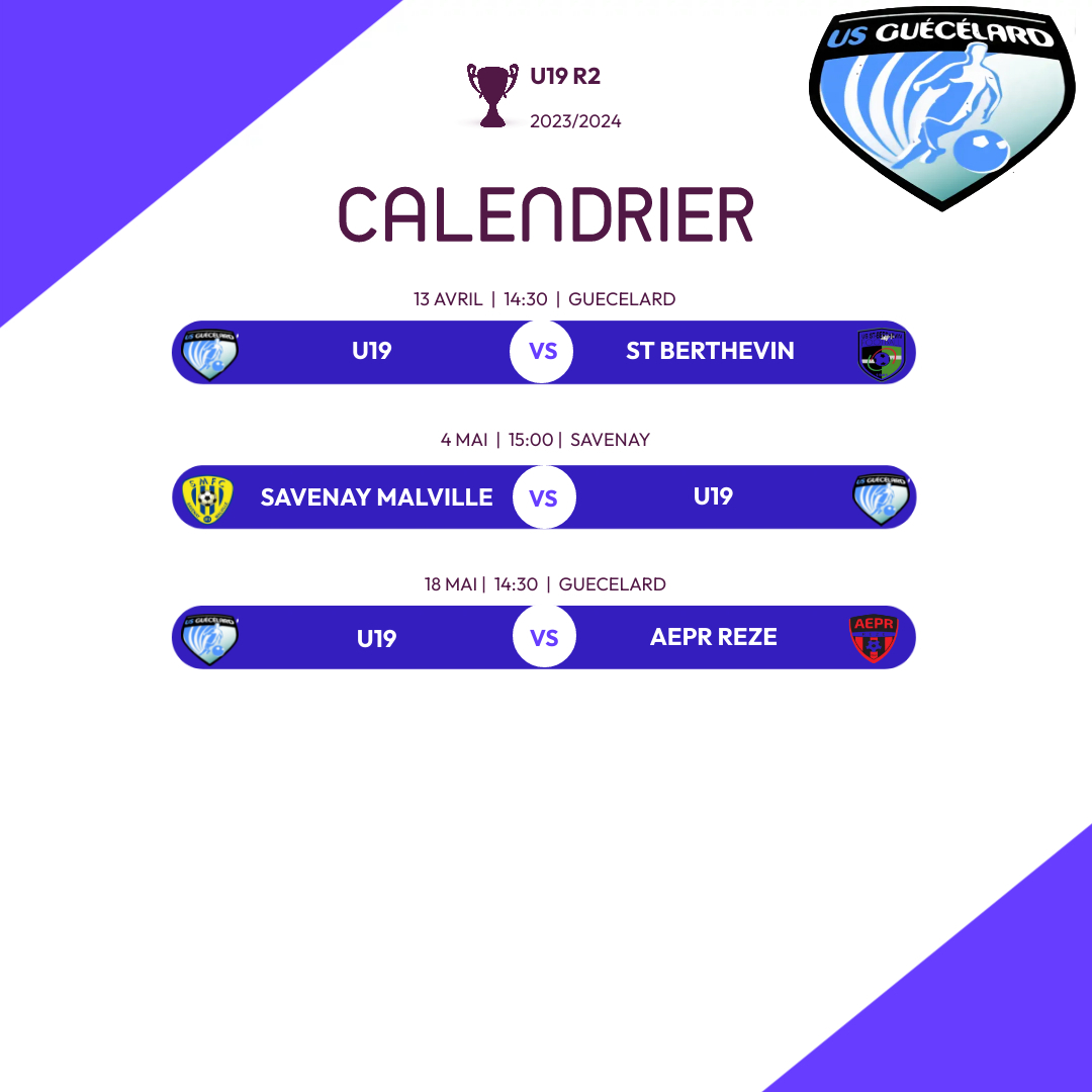 Calendrier 2ème phase U19 R2